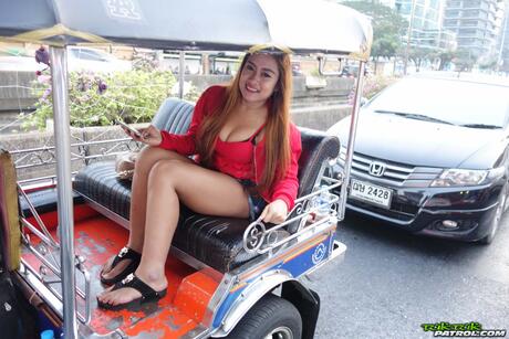Tuk Tuk Patrol: Hot Asian babe Damnee strips and bares her big booty and tits in a solo