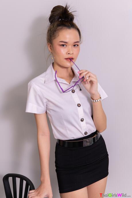 Thai Girls Wild: Platinum Asian secretary Kankanit strips and masturbates in the office
