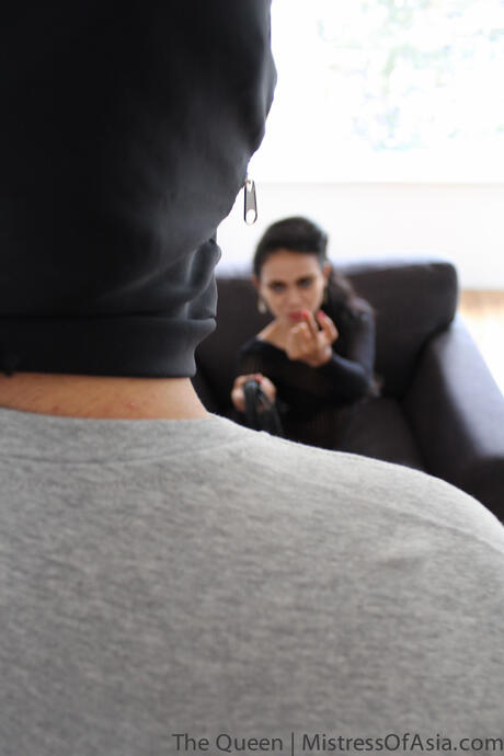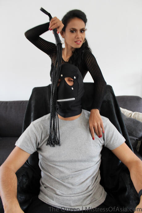 Mistress Of Asia: Amazing Asian secretary The Queen strips to her fishnet stockings & flaunts her ass