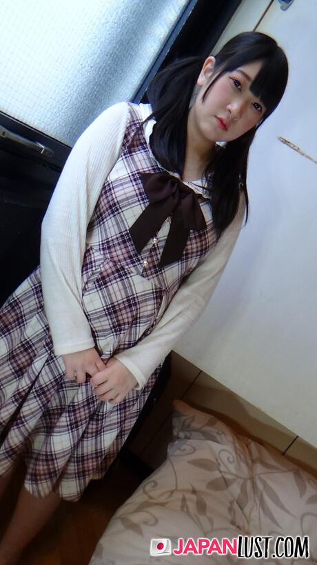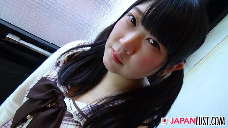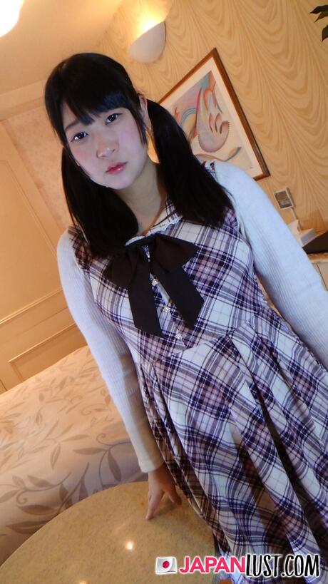 Japan Lust: Amazing Asian teen Miina Shimotani strips and rubs her pussy on a bed