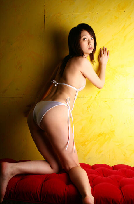 All Gravure: Amazing Asian Yurina Satou reveals her perfect booty in a white bikini & heels