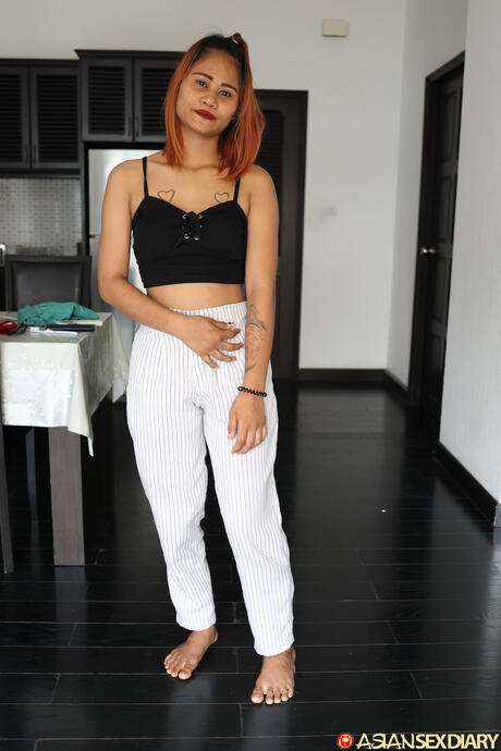 Asian Sex Diary: Amazing blonde Gib C. strips to her pink panties and masturbates in a solo