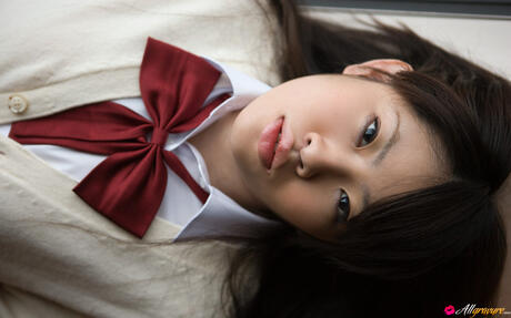 Jav Hub: Amazing brunette Saori strips to her red hat and shows her sexy butt and tits