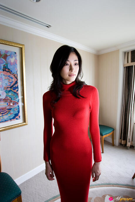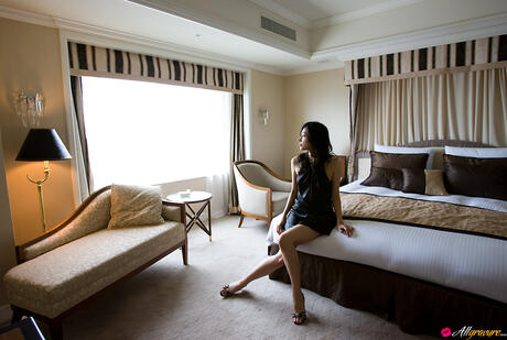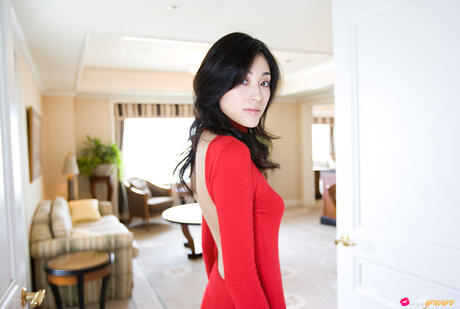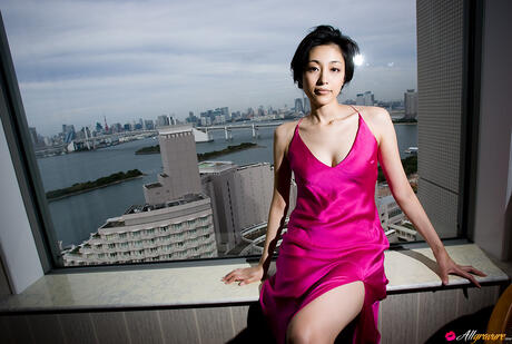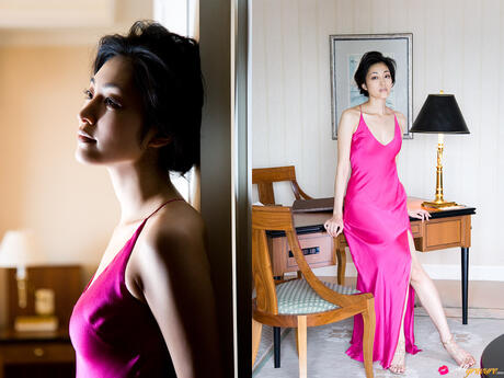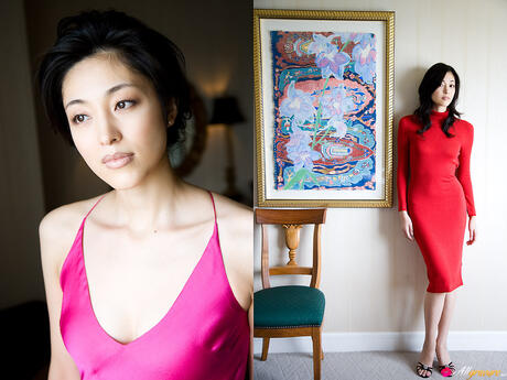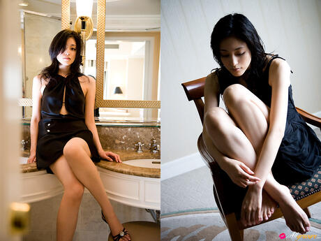 All Gravure: Amazing Japanese babe Noriko Aoyama strips and poses in a black dress