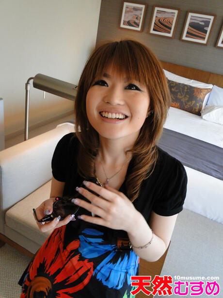 10musume: Amazing Japanese babe Yuna Sato strips and toys her hairy cunt with a dildo