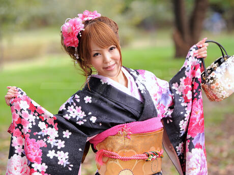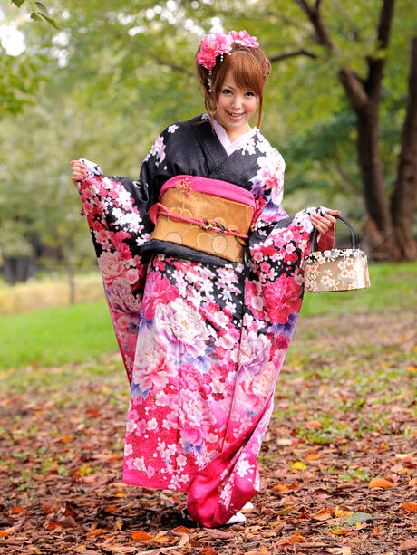 1Pondo: Amazing Japanese girl Misaki Akino strips off her kimono and dildos her pussy
