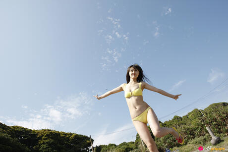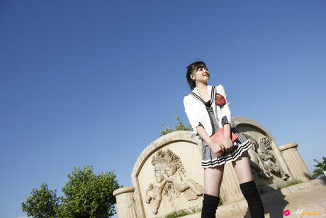 All Gravure: Amazing Japanese schoolgirl Kusumi Koharu strips and reveals her naked form on a fence
