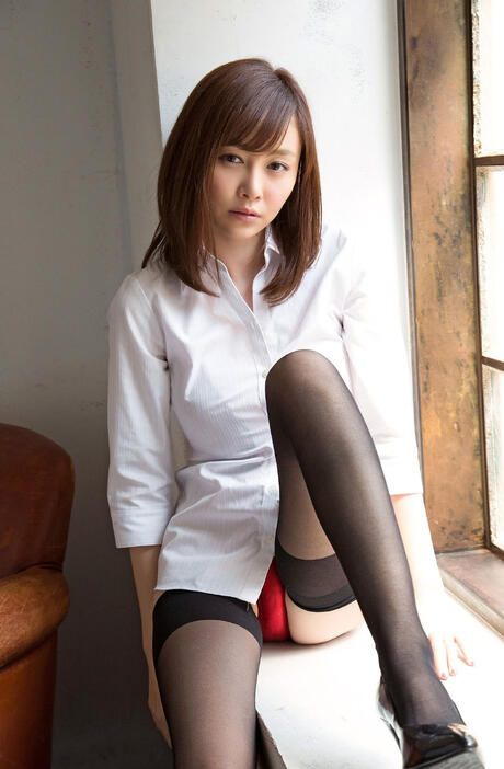 All Gravure: Amazing Japanese secretary Anri Sugihara strips to her red panties & poses