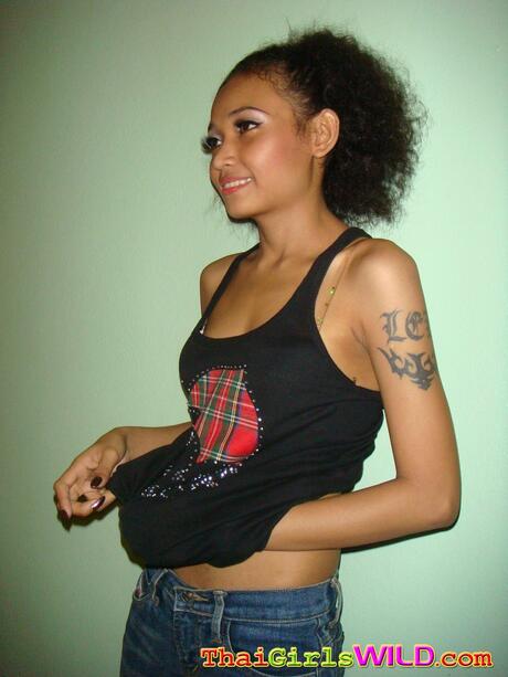 Thai Girls Wild: Amazing Thai babe Lek strips and fingers her pussy on a bed in a solo show
