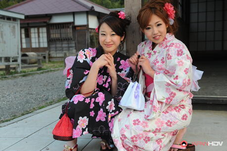 Japan HDV: Asami Nanase and Risa Shimizu pose naked in a hot video in their kimonos