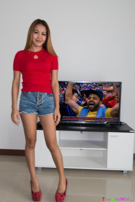 Thai Girls Wild: Asian babe Bonus strips her denim shorts and shows her hot ass in a solo