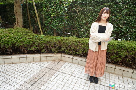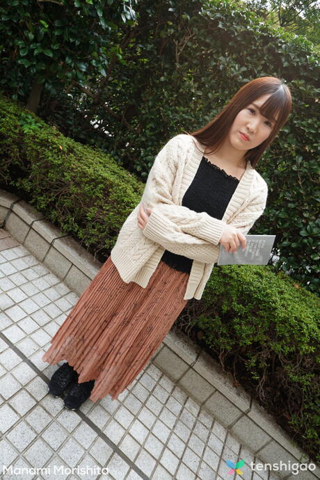 Tenshigao: Asian babe Manami Morishita strips and bares her hairy pussy in a solo