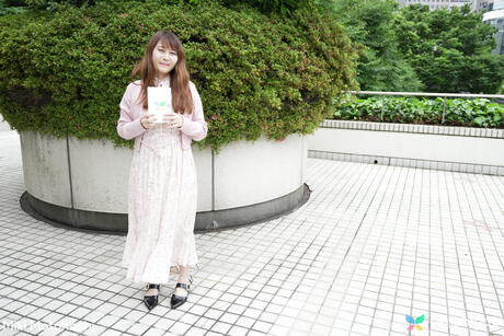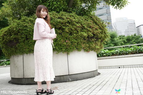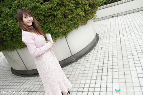 Tenshigao: Asian babe Miki Motohashi strips and rubs her pussy in the garden