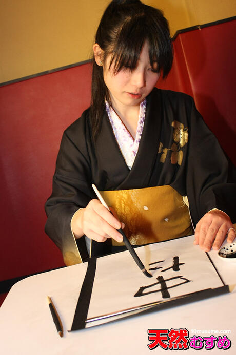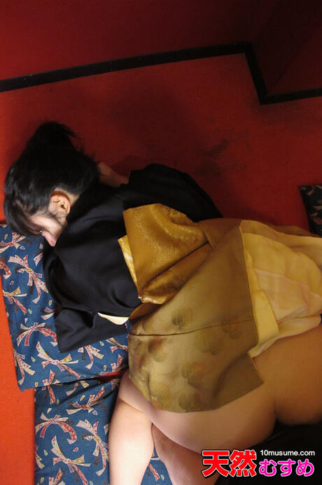 10musume: Asian babe Miku Morishima peels off her kimono and fingers wet twat