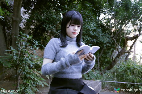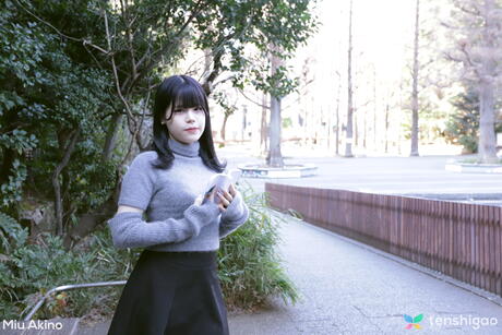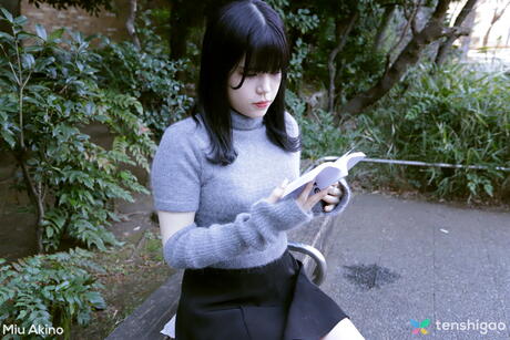 Tenshigao: Asian babe Miu Akino shows her big butt and tits in a solo outdoors