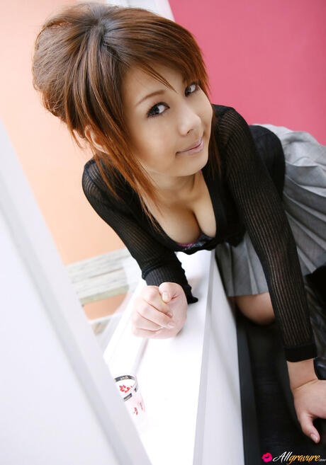 All Gravure: Asian maid Sakurako shows off her big butt and tits in a solo