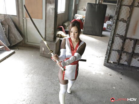Japan HDV: Asian nurse Maria Ono strips to her fishnet stockings & shows her big booty