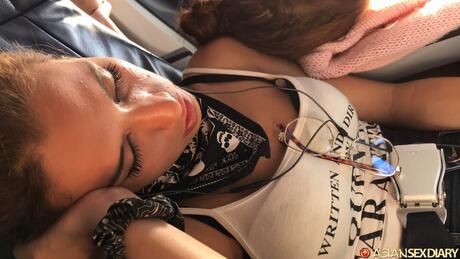 Asian Sex Diary: Asian schoolgirl Fox Twins strips and masturbates in the car