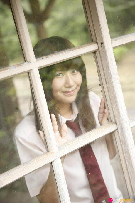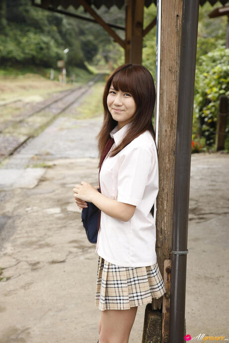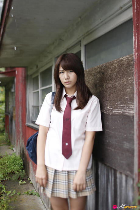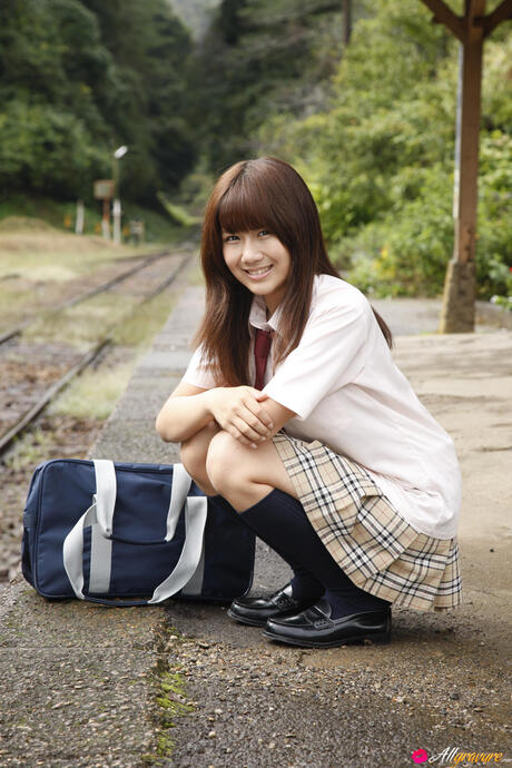 All Gravure: Asian schoolgirl Okai Chisato strips and bares her hot body on the stairs