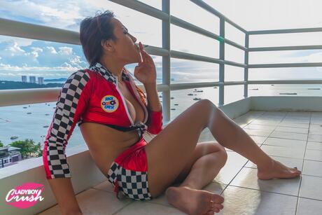 Ladyboy Gold: Asian shemale Ammy strips and toys her ass with a dildo in a solo