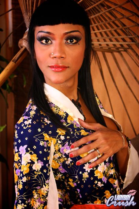 Ladyboy Gold: Asian shemale Nam 3 shows off her big dick in her sexy lingerie