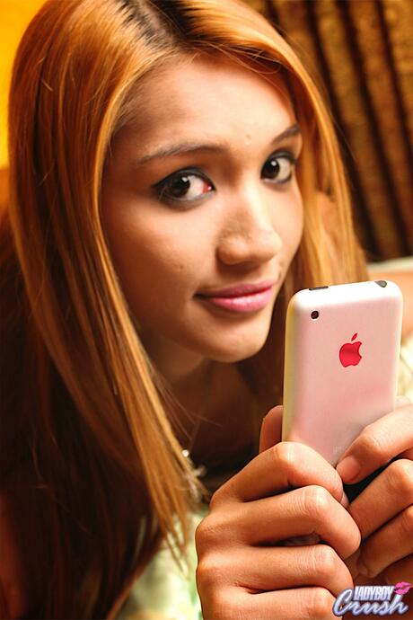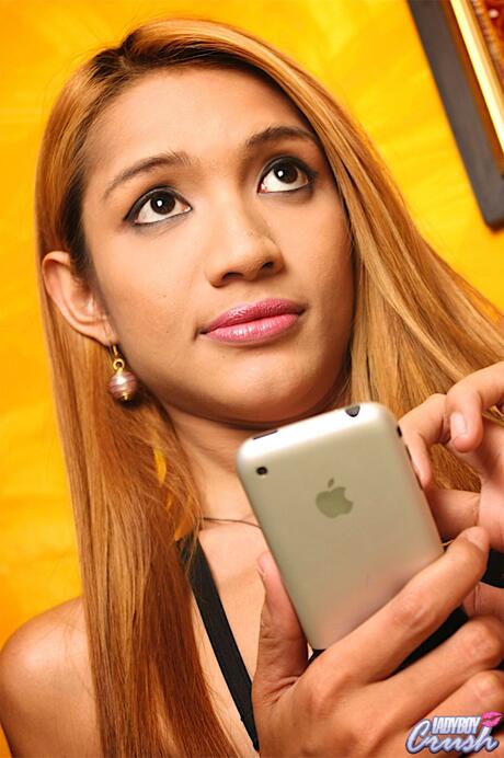 Ladyboy Gold: Asian shemale Vivian 2 shows off her big tits and her tiny dick on her phone