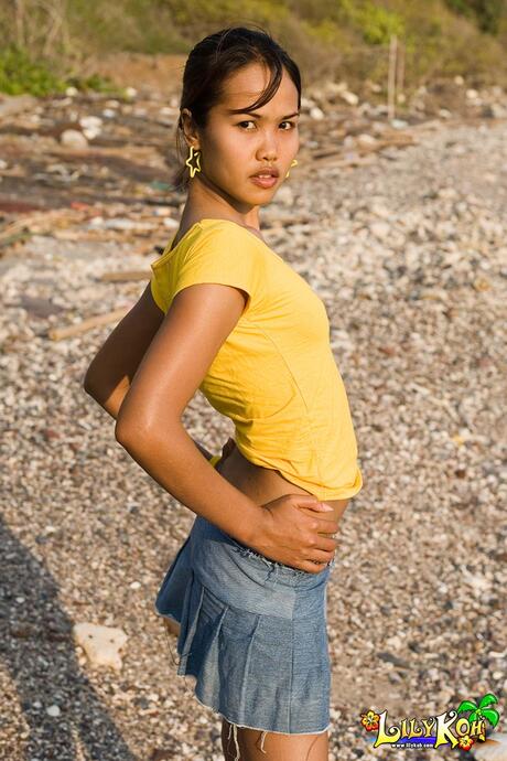 Lily Koh: Attractive teen Lily Koh demonstrates her hot body in a solo teasing her pussy outdoors
