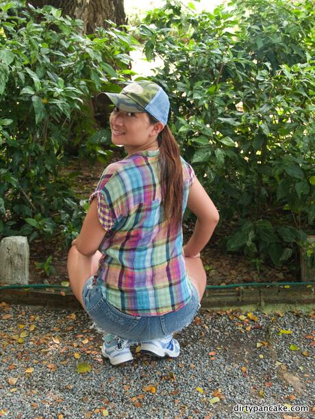 Dirty Pancake: Attractive teen Pancake strips in the forest and shows her hot ass and tits