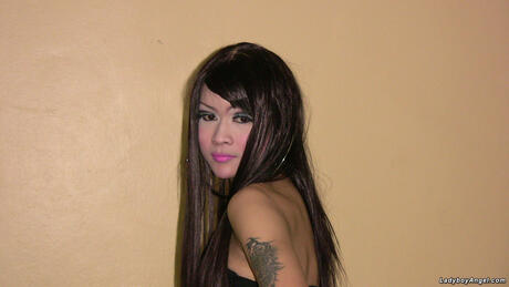 Ladyboy Gold: Beautiful Asian shemale Diamond shows off her perfect butt and her shaved dick