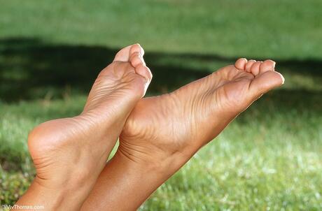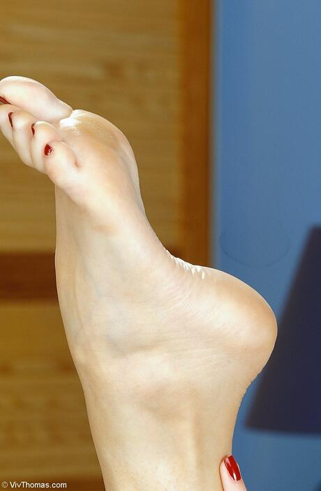 Viv Thomas: Blonde babe Jo flaunts her sexy booty and toes in a solo poolside striptease