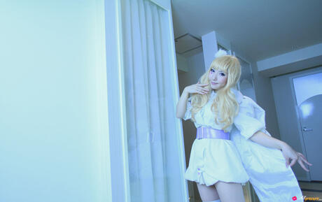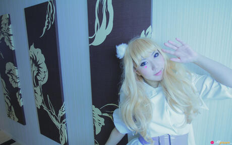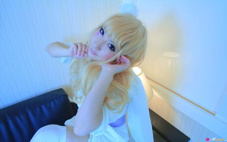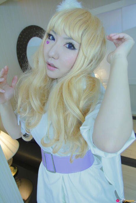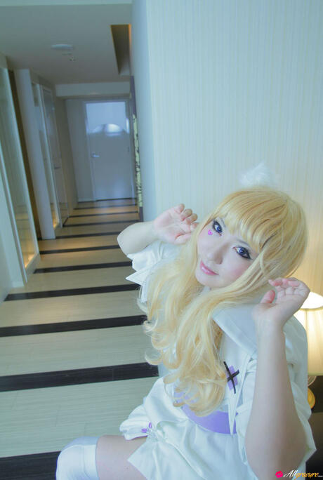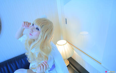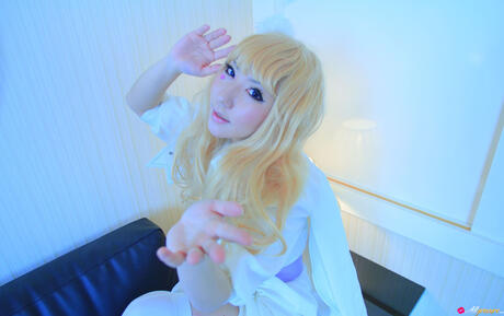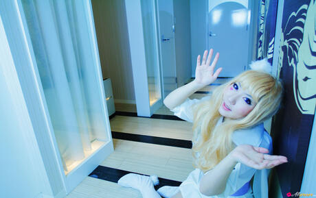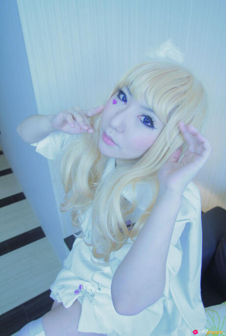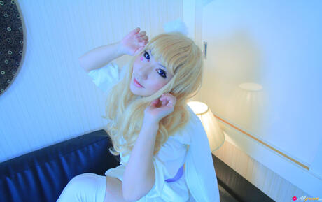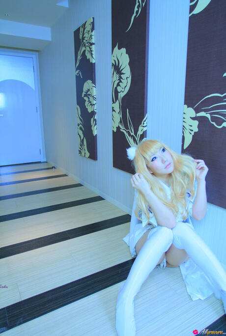 All Gravure: Blonde babe Saku strips off her white dress and shows her hot body