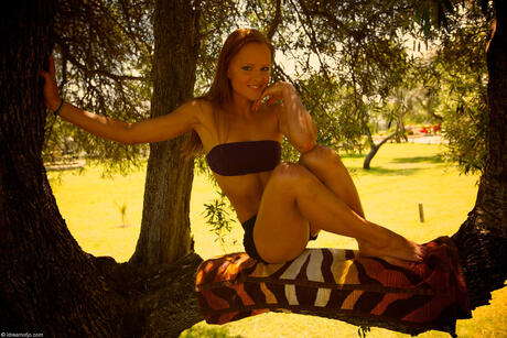 Viv Thomas: Blonde girl Jo removes a black bikini to pose nude in a field of autumn leaves
