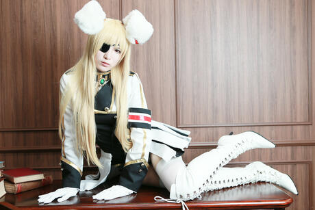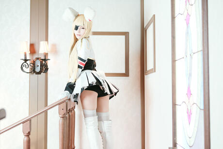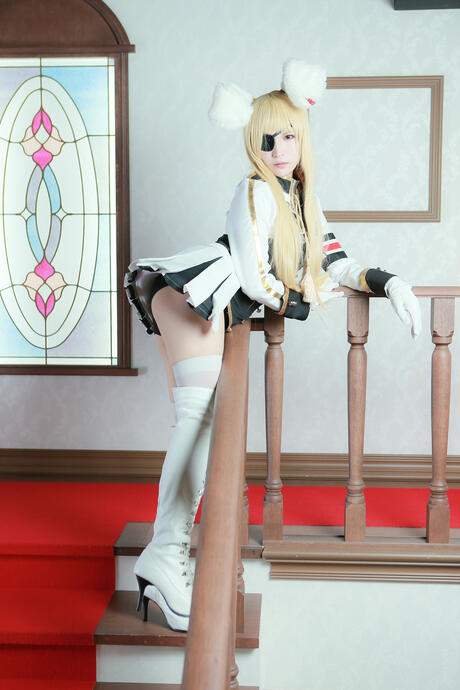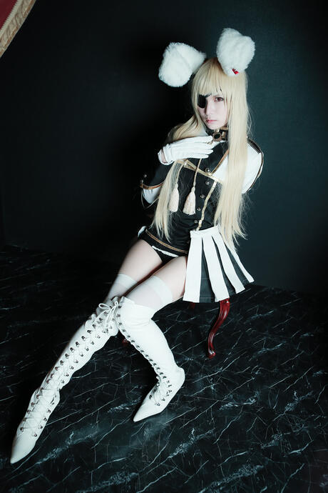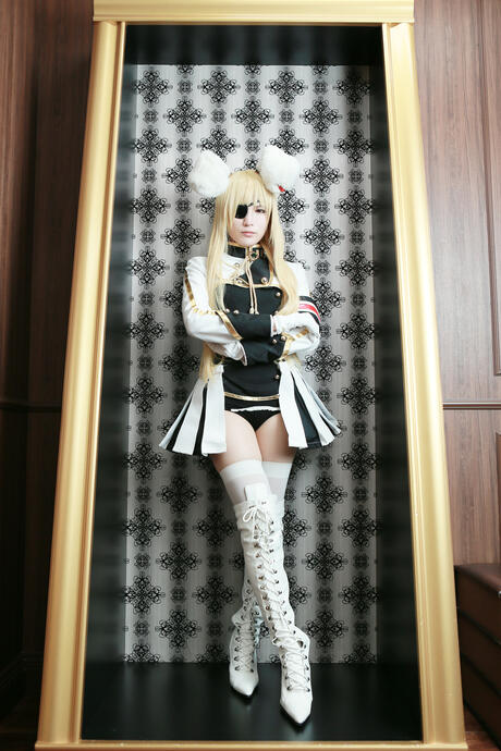 All Gravure: Blonde maid Lecha in military uniform & boots shows her ass & pussy in a solo
