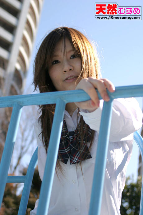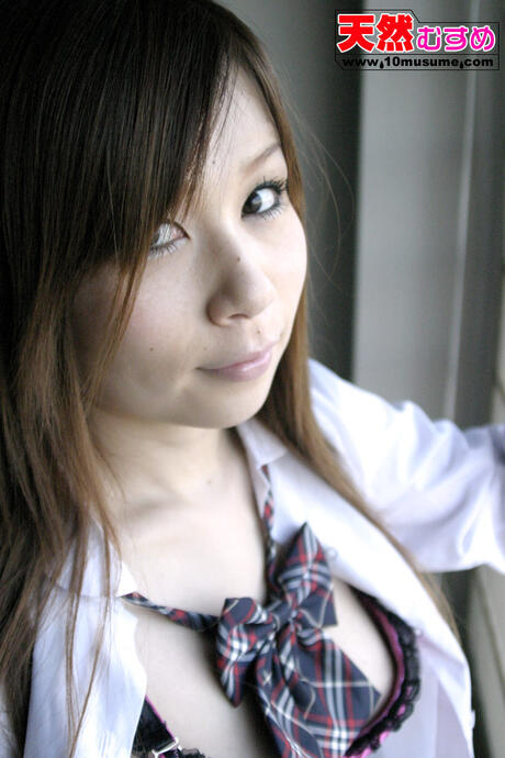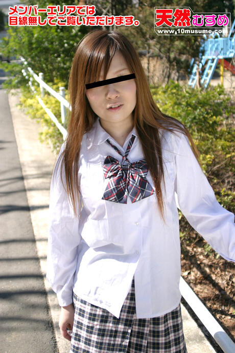 10musume: Blonde schoolgirl IMAI RIKA strips and fingers her pussy in a solo