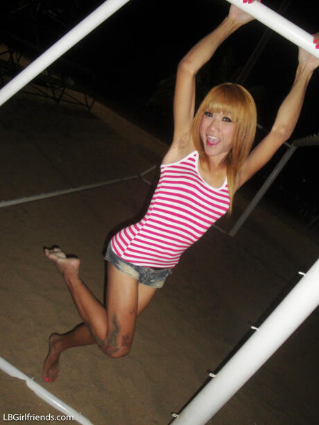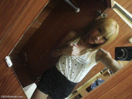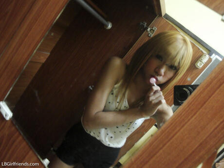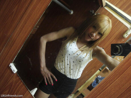 Ladyboy Gold: Blonde shemale Bell shows off her sexy ass