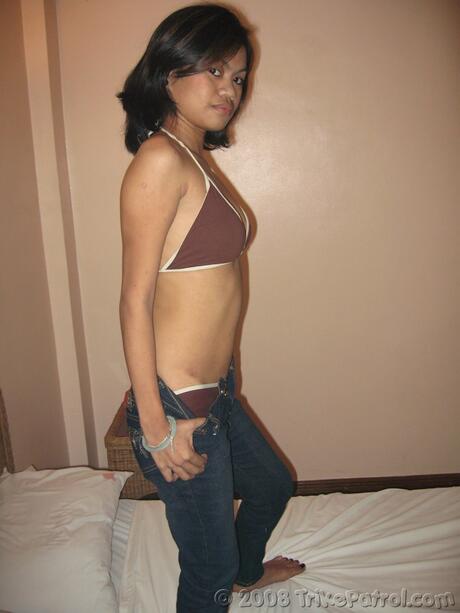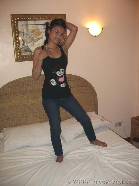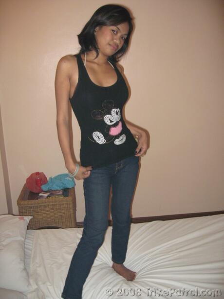 Trike Patrol: Cute teen Kaye La Guardia undresses and masturbates on a bed in a solo