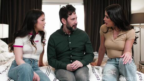 Dare We Share: Cute teens Kylie Rocket and Lulu Chu share a dick in a hot threesome