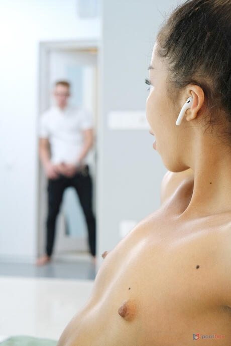 Porn World: Desirable teen Lia Lin strips and gets her hairy cunt drilled by a hung stud