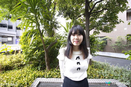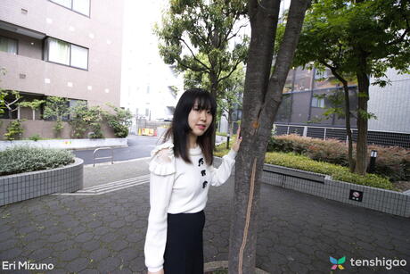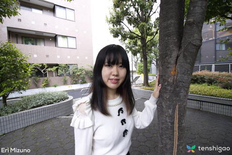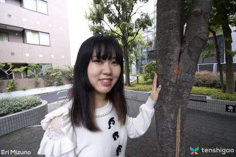 Tenshigao: Eri Mizuno undresses and masturbates with a dildo on a fence