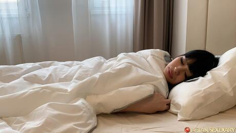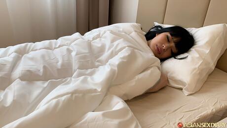 Asian Sex Diary: Fantastic Asian babe Miyabi strips and unveils her small tits and hairy cunt