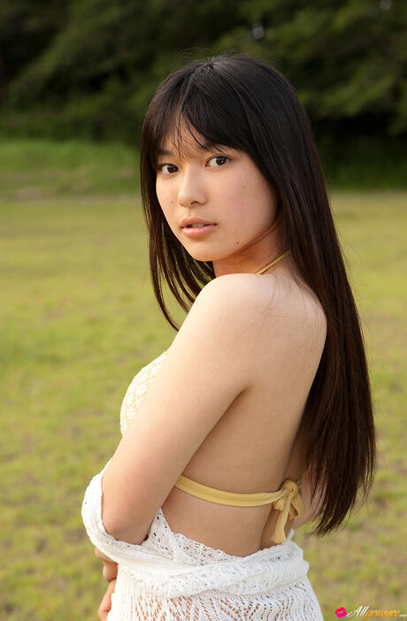 All Gravure: Fantastic Asian babe Tomoe presents her big ass and poses in a bikini on the beach