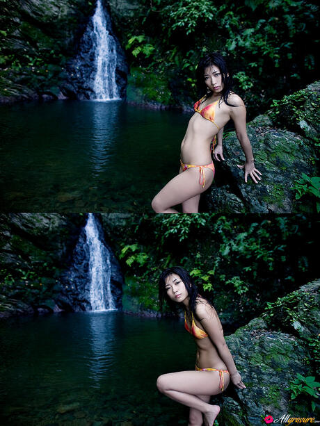 All Gravure: Fantastic Asian girl Yuuki Fukasawa takes off her bikini and panties in the yard