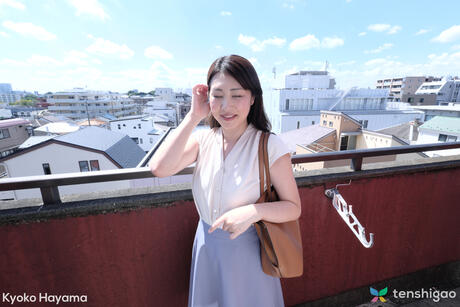 Tenshigao: Fantastic Asian Kyoko Hayma strips and masturbates with a dildo on a chair