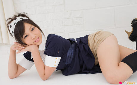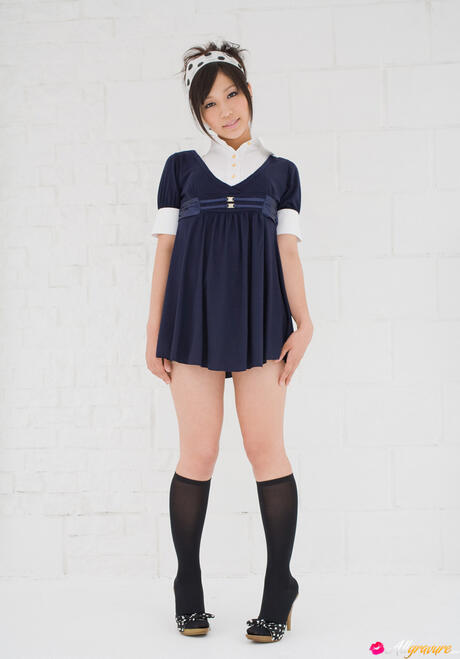 All Gravure: Fantastic Asian maid Yuri Kodo strips her black dress & shows her hot ass