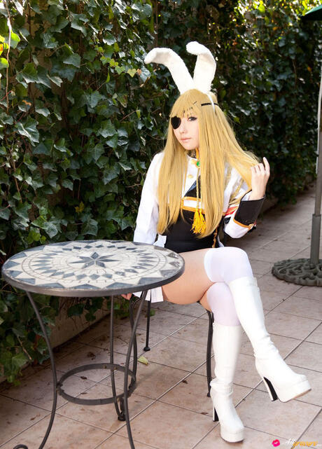 All Gravure: Fantastic blonde Saku reveals her hot ass and poses in a Christmas chair