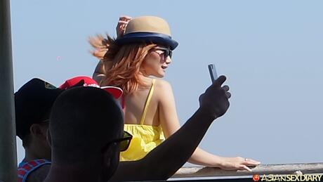 Asian Sex Diary: Fantastic brunette Jennifer B. shows her big butt and tits in a solo outdoors