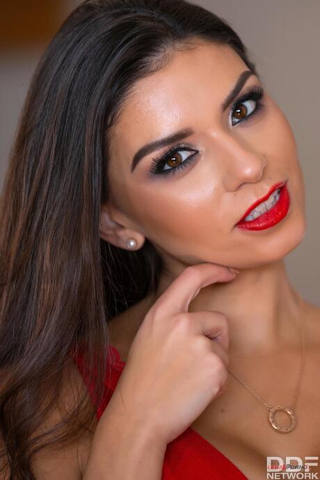Porn World: Fantastic brunette Krystal Webb unveils her big boobs and toys her pussy on a table