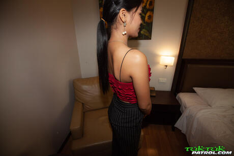 Tuk Tuk Patrol: Fantastic brunette Nok doffs a black dress to pose nude in a pink bikini