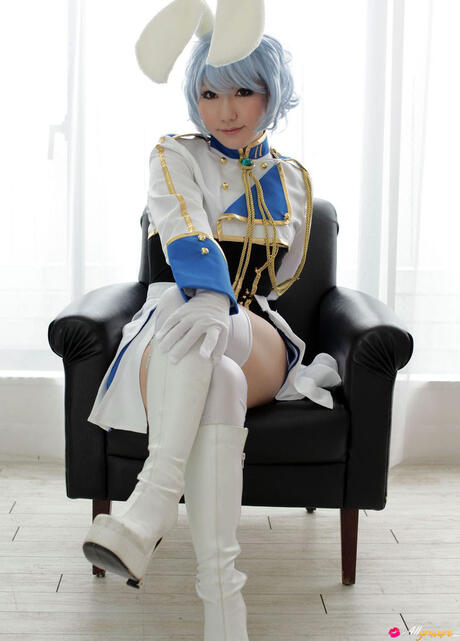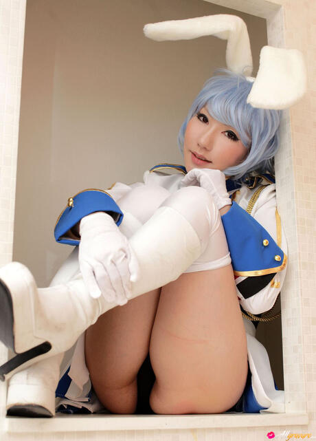 All Gravure: Fantastic bunny Saku shows her sexy butt & her amazing racks in a hot solo striptease