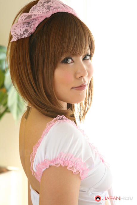 Japan HDV: Fantastic maid Hitomi Yoshino presents her sexy butt in a pink bow & gloves
